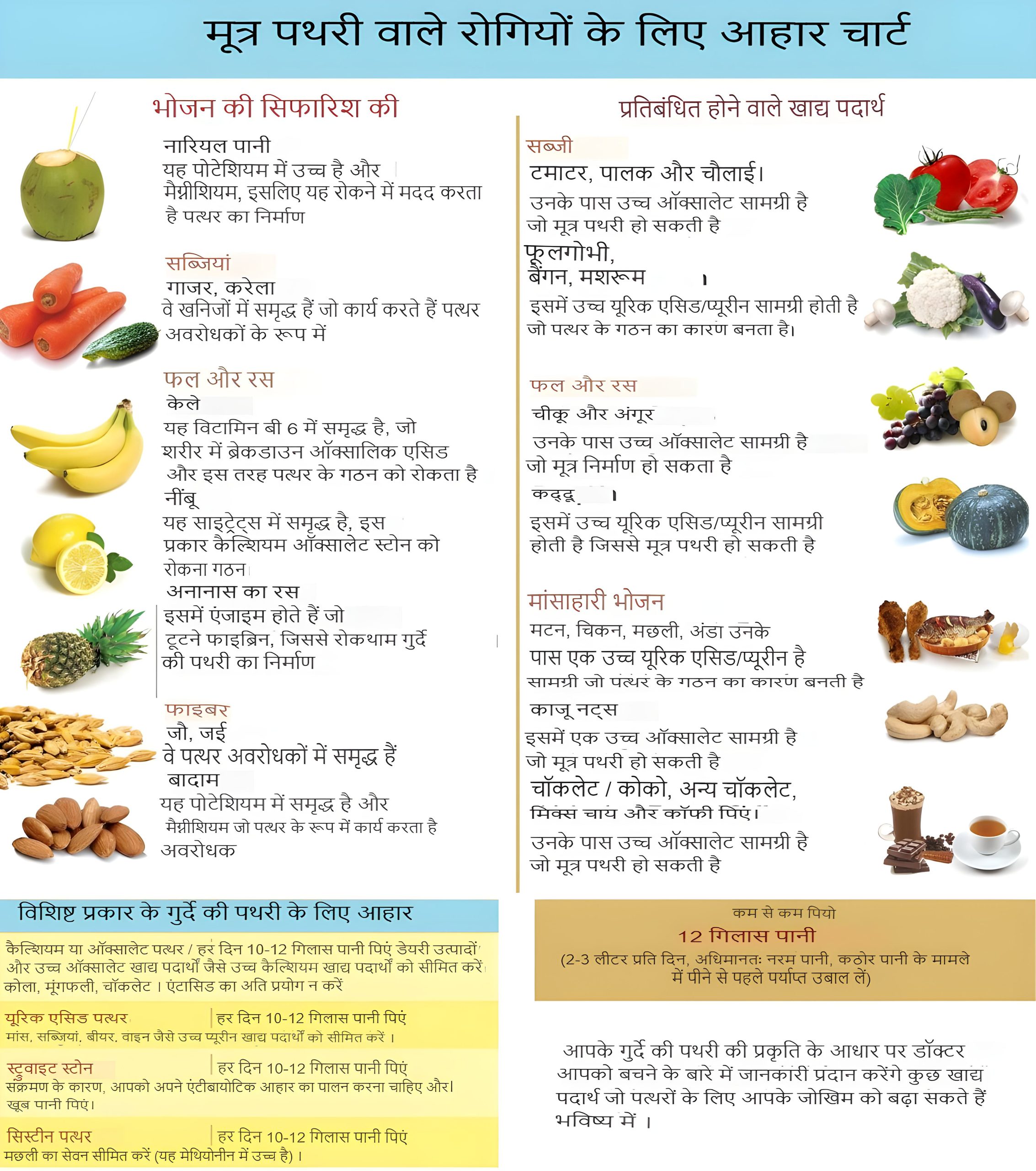 गुर्दे की पथरी की रोकथाम के लिए नमूना आहार योजना