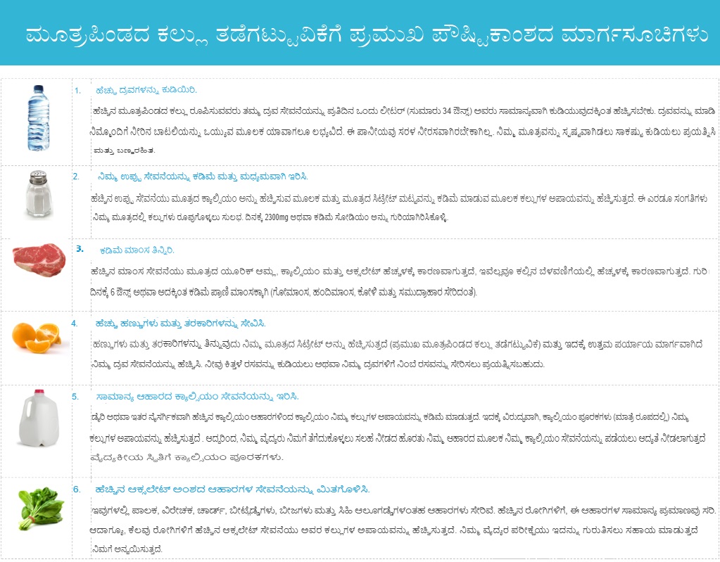 ಕಿಡ್ನಿ ಸ್ಟೋನ್ ತಡೆಗಟ್ಟುವಿಕೆಗಾಗಿ ಪ್ರಮುಖ ಪೌಷ್ಟಿಕಾಂಶದ ಮಾರ್ಗಸೂಚಿಗಳು.